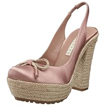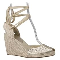 Avoir is a fashionable espadrille with peep toe and crystal ornamentation on the upper. A ribbon ties around the ankle for a chic look.