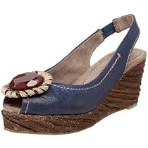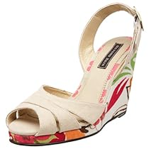 Hooray for a shoe that's stylish and you can actually walk in. The Horray wedge packs a lot charm into a sleek shape with a sparkling textile upper accented with a tonal jewel embellishment just above the peep toe. Woven fiber wraps the heel creating a fascinating counterpoint to the gleaming upper. A lovely abstract pattern in the lining provides a surprising pop of color.
