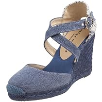 Create a contemporary silhouette in these sophisticated Cecilia Lauren by Ralph Lauren wedges. Textured shiny denim or matte fabric or canvas upper in an espadrille dress wedge style with a round peep toe. Wide fabric straps contour a V-cut vamp with delicate side peep detail. Fabric lining and natural textured cushioning logo insole flat traction rubber coated outsole. A 1/2 inch braided rope textured espadrille midsole rises to a 2 3/4 inch wedge heel.[]
