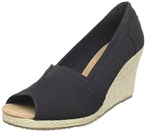 Skechers Women's Bobs-Club Open-Toe Slip-On WedgeBlack6 M US